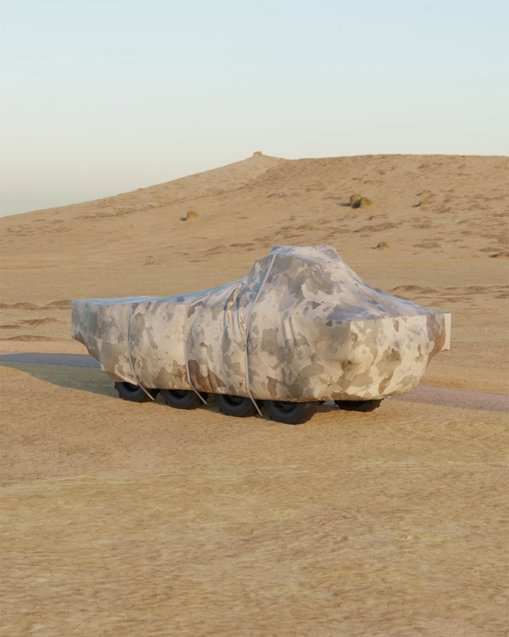 Alongside full-vehicle covers, we also provide modular camouflage systems designed for tanks, armoured vehicles and smaller UGV platforms.